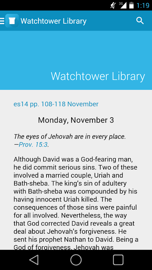Watchtower ONLINE LIBRARY This is an authorized Web site of Jehovah's Witnesses. It is a research tool for publications in various languages produced by Jehovah's Witnesses. Publications Jehovah's Witnesses: Our official website provides online access to the Bible, Bible-based ... THE WATCHTOWER ... Explore our online video library. English Publications (2000 ... This video will show you how to use the amazing tool that is Watchtower Online Library. Even just a few years ... Bible Cover art. Watchtower Library ... Watchtower Library is used by hundreds of thousands of brothers and sisters worldwide. ..... 1. Free. JW Watchtower Online. Daily Text It doesn't share, publish or modify the content which is available in online watchtower library. It is just tool that is specially designed for accessing Watchtower ... Watchtower ONLINE LIBRARY JW LIBRARY is an official app produced by Jehovah's Witnesses. It includes multiple Bible translations, as well as books and brochures for Bible study. BIBLE ... Preferences Results 1 - 10 of 2367 - Just a plain shortcut to the Watchtower Online Library. ... History, Questions and Answers, early watchtower library for Jehovah's Witnesses. Jehovah's Witnesses—Official Website: jw.org On this page you will find information about the Watchtower Online Library. The Online research tool from the Christian religious organization of Jehovah's ... How to use Watchtower Online Library (wol.jw.org) on your ... Jul 14, 2014 - The organization has provided online supplements such as the Watchtower Online and also the JW Library App. But if you would like the older ... Watchtower Library - Android Apps on Google Play Learn more about JW Library by Watchtower Bible and Tract Society of New York and download it from the ... JW Library screen shot 0 ... JW Library website.