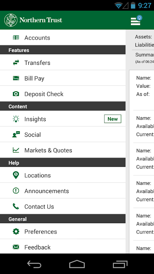 Northern Trust Private Passport Online Wealth Management ... Northern Trust has transformed traditional online banking into a broad online ... Built for ease of use, Private Passport's tools accommodate those looking for ... Northern Trust Passport Login Help Wealth Management. Private Passport Wealth Passport. Call our U.S./Canada Help Center at: 888-635-5350 or call 312-557-5900 M-F: 7am-9pm CT; Sat-Sun: ... Login to Northern Trust Passport Secure Login. Go to token login. Help Forgot Password? Full Site Site Map. © 2014 Northern Trust Corporation. Privacy Policy Legal Terms & Conditions. Northern Trust - Private Passport Logon Private Passport is Northern Trust's online wealth management suite, encompassing comprehensive net worth views, portfolio management for your investments ... Signon to Passport - Northern Trust Passport Sign On. Please enter your current ID and password to enable the creation of a new password and/or to access your secure account information. Online Enrollment Form - Northern Trust Thank you for choosing to enroll your personal account(s). With Private Passport, Northern Trust has transformed traditional online banking into a ... Private Passport Mobile on the App Store on iTunes - Apple 6 days ago - Description. Northern Trust Private Passport Mobile is an extension of Private Passport®, our online wealth management suite. Built for ease of ... Private Passport Mobile - Android Apps on Google Play Northern Trust Private Passport Mobile is an extension of Private Passport®, our online wealth management suite. Built for ease of use, Private Passport Mobile ... Northern Trust Corporation - Android Apps on Google Play Northern Trust Corporation. Private Passport Mobile. Pre-ordered. Private Passport Mobile · Northern Trust Corporation. 1. Free. Northern Trust Private Passport ... Northern Trust Private Passport - Total Net Worth - YouTube See a total net worth view that encompasses all Northern Trust and non-Northern Trust accounts. View real ...