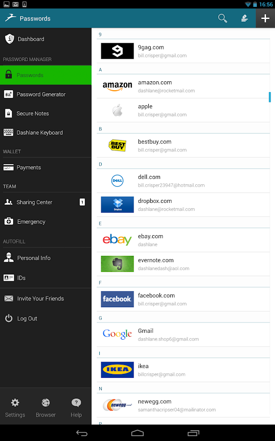 Dashlane Free Password Manager - Never Lose A ... Dashlane's free password manager securely stores IDs, passwords & other important information in a secure password vault. Sign up for free! Dashlane: Best Password Manager, Free Form Filler ... Rated the best password manager. Autofill with our free form filler. Save receipts, payment types, passwords & personalize your digital wallet. Dashlane Password Manager - Android Apps on Google Play Dashlane is life-changingly great. And free. Get it.” - David Pogue, The New York Times Dashlane makes it easy to keep track of passwords and personal info ... Dashlane Password Manager & Secure Digital Wallet - Apple Read reviews, get customer ratings, see screenshots and learn more about Dashlane Password Manager & Secure Digital Wallet on the App Store. Download ... Review: Dashlane is a robust password manager with a ... Jul 10, 2013 - Dashlane is an powerful and flexible password manager for every level of experience that's also useful for form-filling, expense tracking, and ... Dashlane Review 2014 | Find Best Password Manager ... Do you want to find the best online password manager to give you peace of mind? Read our review of Dashlane to see if it can help. The Best Password Managers | PCMag.com Aug 22, 2014 - DashLane, LastPass, and Keeper Password Manager & Digital Vault 8 support authentication via the Google Authenticator mobile app. Password Managers Reviewed: Dashlane, 1Password ... May 6, 2014 - Using a different password for every online site and service is critical to your cyber security. Personal Technology Columnist Geoffrey Fowler ... Amazon.com: Dashlane Password Manager: Appstore for ... Get the world's best password manager and secure digital wallet for every device; - Securely store your passwords in a secure vault that only you can access ... Password manager Dashlane now offers automatic ... 7 days ago - The password manager Dashlane, which competes with the likes of LastPass and 1Password, just gained a new trick. Through the acquisition ...
